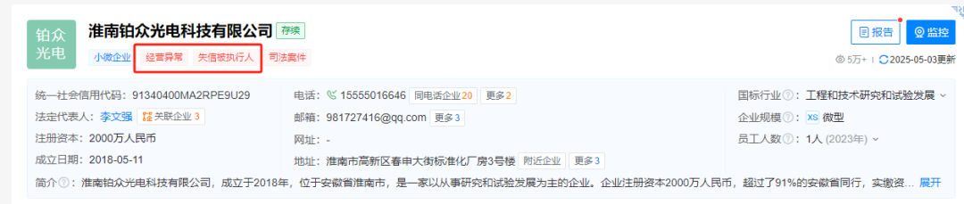 此外值得一提的是,标的公司还存在因放宽信用政策而导致大规模应收账款出现坏账损失的异常情况。截至2023年底,在标的公司应收账款中,客户淮南铂众光电科技有限公司高达1,164.89万元的应收账款已被全额计提了坏账准备,其计提理由为预期无法收回。根据天眼查显示,该客户目前已为经营异常,且被列为了失信被执行人。