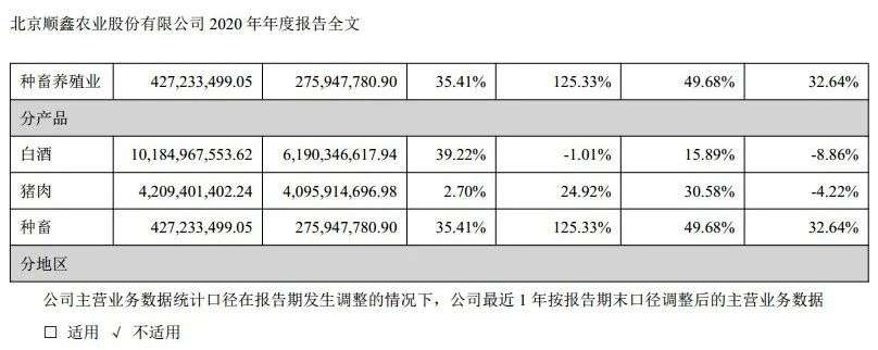 不仅如此,顺鑫农业2020年猪肉板块中,猪肉(屠宰)和种畜产品毛利率分别为2.7%和35.41%,分别同比下滑4.22%和增长32.64%。显然,顺鑫农业猪肉产品2.7%的毛利率离亏损仅“一步之遥”。