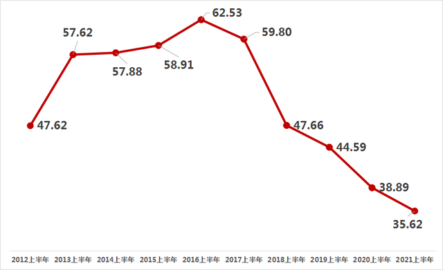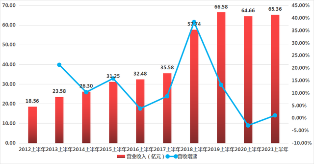 今年上半年,顺鑫农业的房地产业务拖累公司业绩,而主业白酒也并没给出超预期的惊喜。首先,顺鑫农业的白酒业务增速放缓,是公司面对的客观现实。1月至6月,公司白酒业务实现营业收入65.36亿元,相比2020年同期的64.66亿元,仅增长了1.07%,这一增速在2012年至今以来排名倒数第二。2018年公司营收增速达到38.38%,为这十年来增速最高的年份。但自2019年起来,顺鑫农业不仅增速下滑明显,从营收金额来看,也在64亿元至66亿元的营收区间钝化。