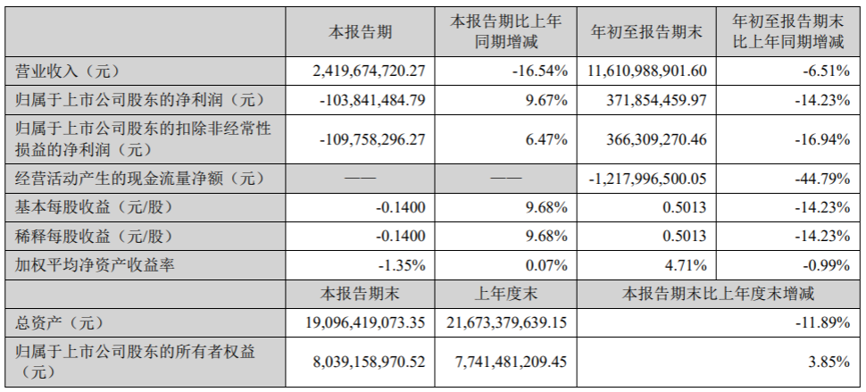 公司前三季度实现营业收入约116.11亿元,同比下降6.51%;前三季度归属于上市公司股东的净利润约为3.72亿元,同比下降14.23%。