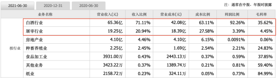 从半年报来看,白酒产业作为公司第一大业务板块,2021年上半年,销量下滑0.58%,但营业收入同比增加1.09%,为65.36亿元。