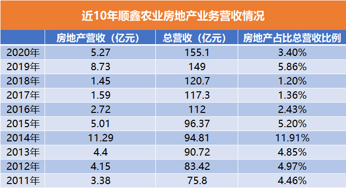 事实上,2013年,时任顺鑫农业董事长的王泽一上任便提出聚焦酒业与肉类业务。随后,顺鑫农业在2016年表示“房地产业务去库存存在一定难度,仍处于发展探索期”,2019年房地产开发业务被公司列入“拟退出业务”;2020年顺鑫农业进一步表态“多措并举推动地产业务转型发展”。