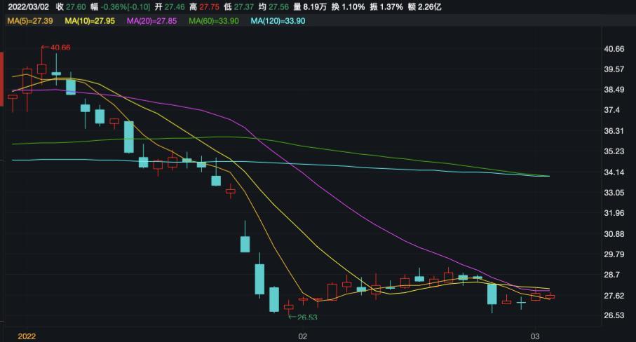 2022年开年至今,顺鑫农业股价区间跌幅已近30%。截至3月2日收盘,该公司股价报收于27.6元/股,市值为205亿元