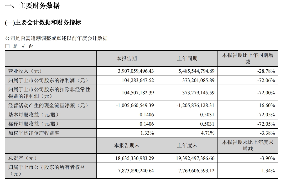 具体来看,一季度,顺鑫农业营业收入39.07亿元,同比回落28.78%;净利润1.04亿元,同比回落72.06%。此前,顺鑫农业预计一季度净利润下跌68.38%~75.88%。