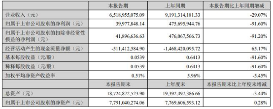 报告期内,顺鑫农业的基本每股收益为0.0539元/股,同比下滑91.60%;加权平均净资产收益率为0.51%,比上年同期减少5.45个百分点。