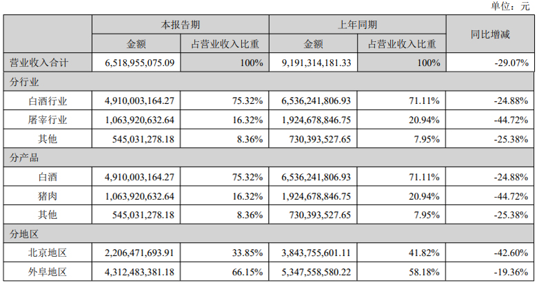 透过财报数据发现,顺鑫农业的系列产品销量均出现了较大跌幅。