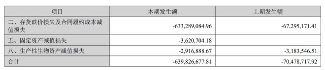 资产减值损失的数据。图片来源:顺鑫农业公告