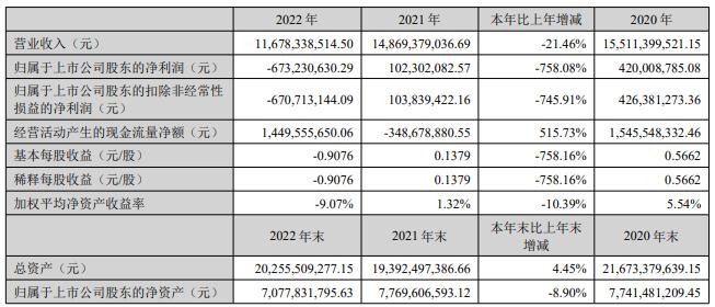 主要受到归属于上市公司股东的净利润出现亏损的影响,顺鑫农业归属于上市公司股东的净资产也从上年末的77.70亿元减少至2022年年末的70.78亿元。