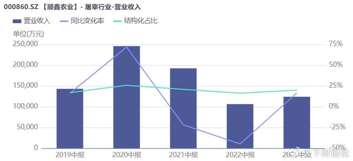 相比其他业务,顺鑫农业猪肉板块表现较好,今年上半年营收增长约17%,但拉长时间线看,这只不过是在2021年、2022年营收连续大跌后的“反弹”。