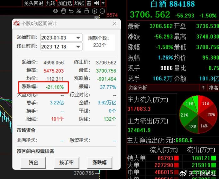 数据显示,截至12月18日,白酒指数年内已跌去超20%。