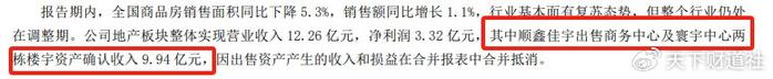 翻看顺鑫农业半年报,顺鑫佳宇出售商务中心和寰宇中心两栋楼,取得资产确认收益约10亿元,才使得顺鑫佳宇上半年业绩扭亏为盈,净利润约3亿元。