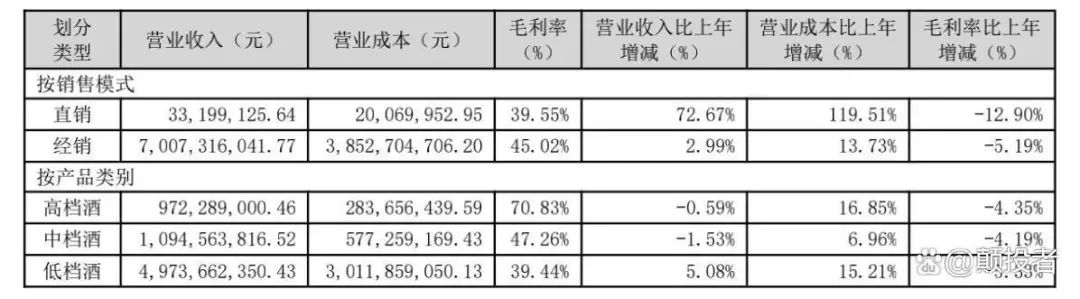 从图表上来看,顺鑫农业的高档酒收入大约是十个亿,这其中的毛利率达到了70%,中档酒也在十个亿之间,毛利率是47%,低档酒营业总收入是50亿毛,利率在39%左右。