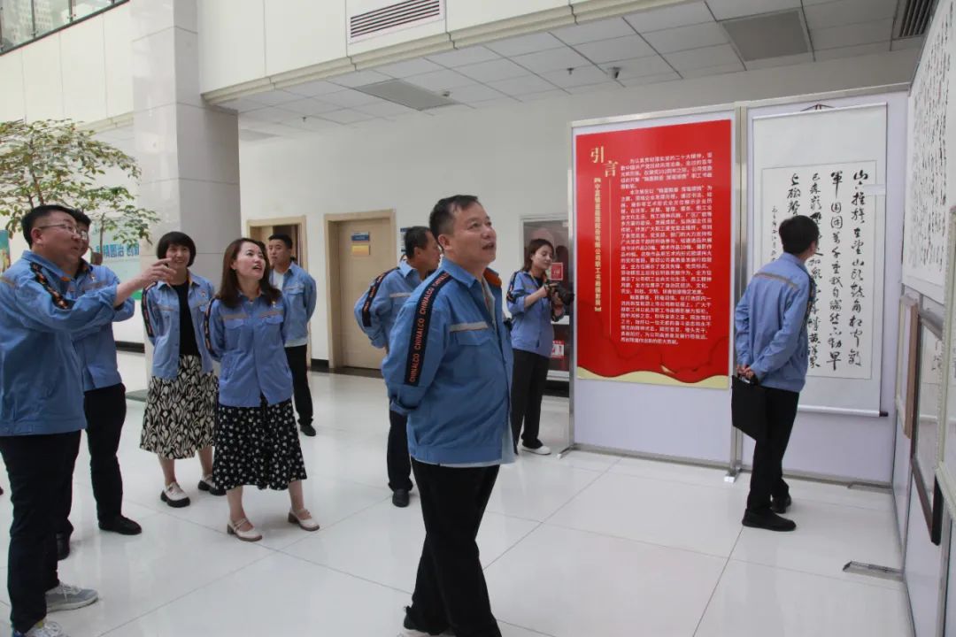 随后,交流学习代表一行来到银星能源机关本部,在银星能源党委书记、党委副书记的陪同下,一同观看了银星能源近日举办的“翰墨飘香挥毫颂情”喜迎“七一”职工书画摄影展,就书法、绘画、剪纸、摄影等作品与王洼煤业公司交流学习代表进行了深入交流。
