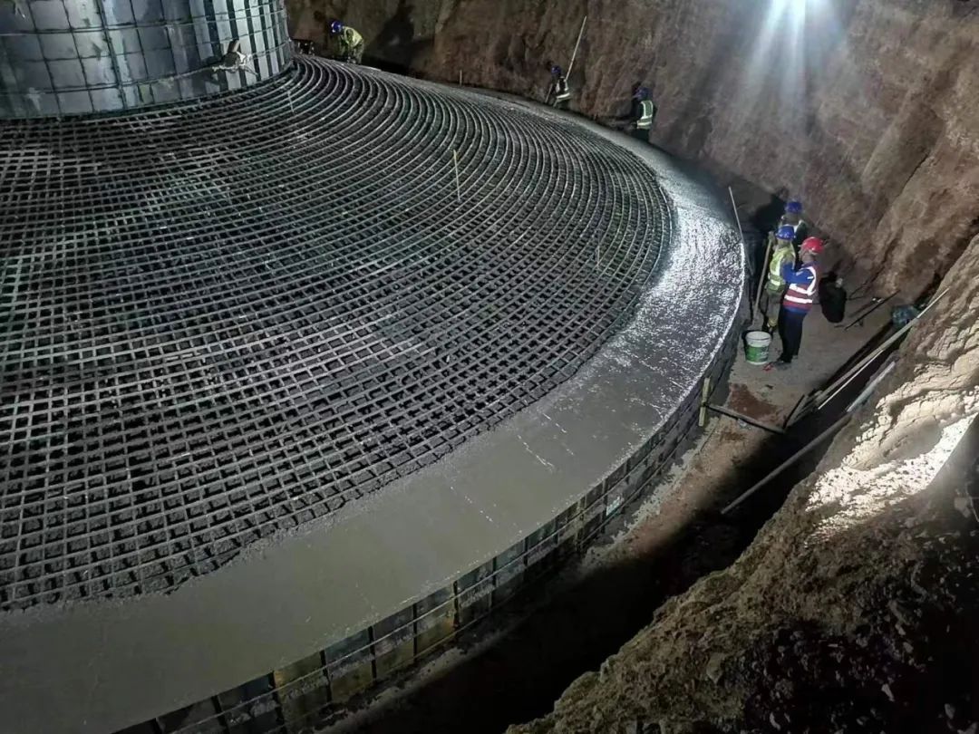风机基础浇筑过程中,项目部成员并兵分两路,一路在商混站监控混凝土配合比下料准确,保证罐车供应连续。另一路坚守浇筑现场,监督混凝土坍落度检测、试块制作取样,并亲自上到仓面,严抓严控锚栓笼处混凝土振捣密实、混凝土料环形摊铺振捣工艺等,全过程指导施工顺利进行,控质量,抓细节,有力保障了首台风机基础混凝土浇筑一次成功。