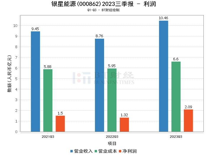 在利润方面,银星能源2023年三季度的营业收入为10.46亿元,相比上年同期的10.11亿元有所增长。营业利润为2.34亿元,较上年同期的2.06亿元增长。净利润为2.09亿元,较上年同期的1.93亿元有所提升。这些数据显示出公司盈利能力的提升。