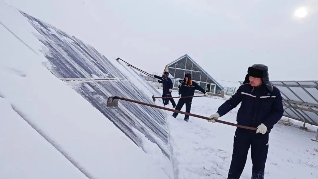 连日的冰雪天气为高沙窝光伏电站披上了银装,场站集控楼大门前是一片白茫茫的雪地。场站职工在站长的带领下,迅速行动、主动作为,使用自制除雪工具,个个化身“清理”小战士。经过2个多小时的打扫清理,共清理0.21MWp容量的电池组件积雪,为保安全、保电量、增效益贡献了积极力量。