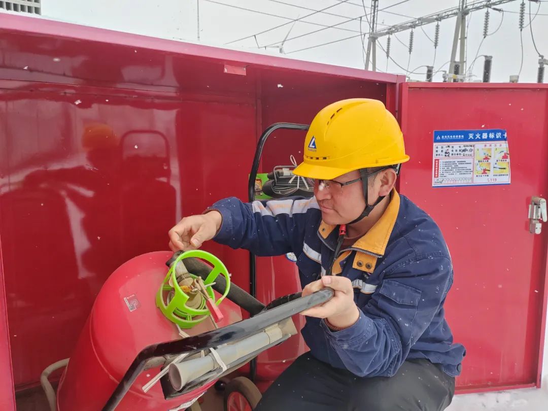 近日,全区出现大范围持续强降雪天气,银星能源盐池运维区域迅速启动应急预案,成立专项巡检小组,分别对升压站、输电线路、发电机组和场区道路进行雪后“特巡”,重点排查设备加热系统、油温油位、六氟化硫压力、消防器材、道路及线路积雪履冰等情况,对因大雪冰冻天气导致的叶片、风速仪和风向标覆冰问题进行集中维护消缺,加强站内设备专项巡视频次,确保主变压器、断路器、刀闸等户外一次设备在低温环境下可靠稳定运行。图为该区域职工正在升压站内检查消防设备。(岑国利)