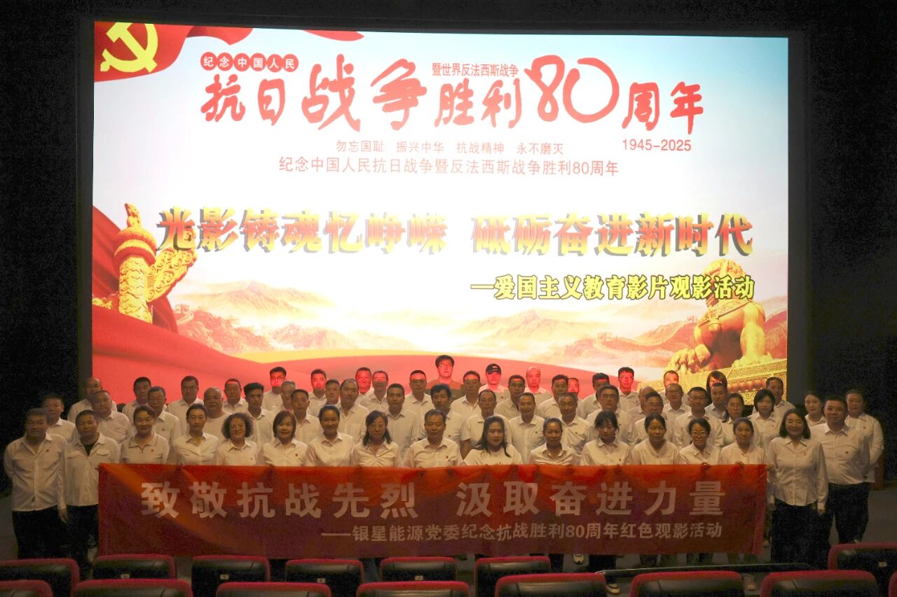 为隆重纪念中国人民抗日战争暨世界反法西斯战争胜利80周年,铭记历史、缅怀先烈,传承红色基因,激发广大干部职工的爱国热情和奋斗精神,银星能源党委精心组织了一场以“致敬抗战先烈汲取奋进力量”为主题的党史题材电影观影活动。公司党员、团员、职工群众以及新入职大学生积极响应,共同走进影院,在光影交织中回望峥嵘岁月,从英雄故事里汲取奋进力量。