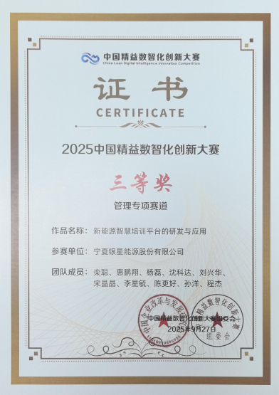 近日,由中国企业改革与发展研究会主办的2025中国精益数智化创新大赛全国总决赛在天津举办,中铝集团选送的7个项目中,银星能源《新能源智慧培训平台的研发与应用》项目荣获三等奖,在新能源人才数智化培养领域展现了突出的创新价值。