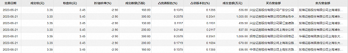 三湘印象6月21日大宗交易成交1500万股,成交额5025万元,占当日总成交额的49.82%,成交价3.35元,较市场收盘价3.45元折价2.9%。