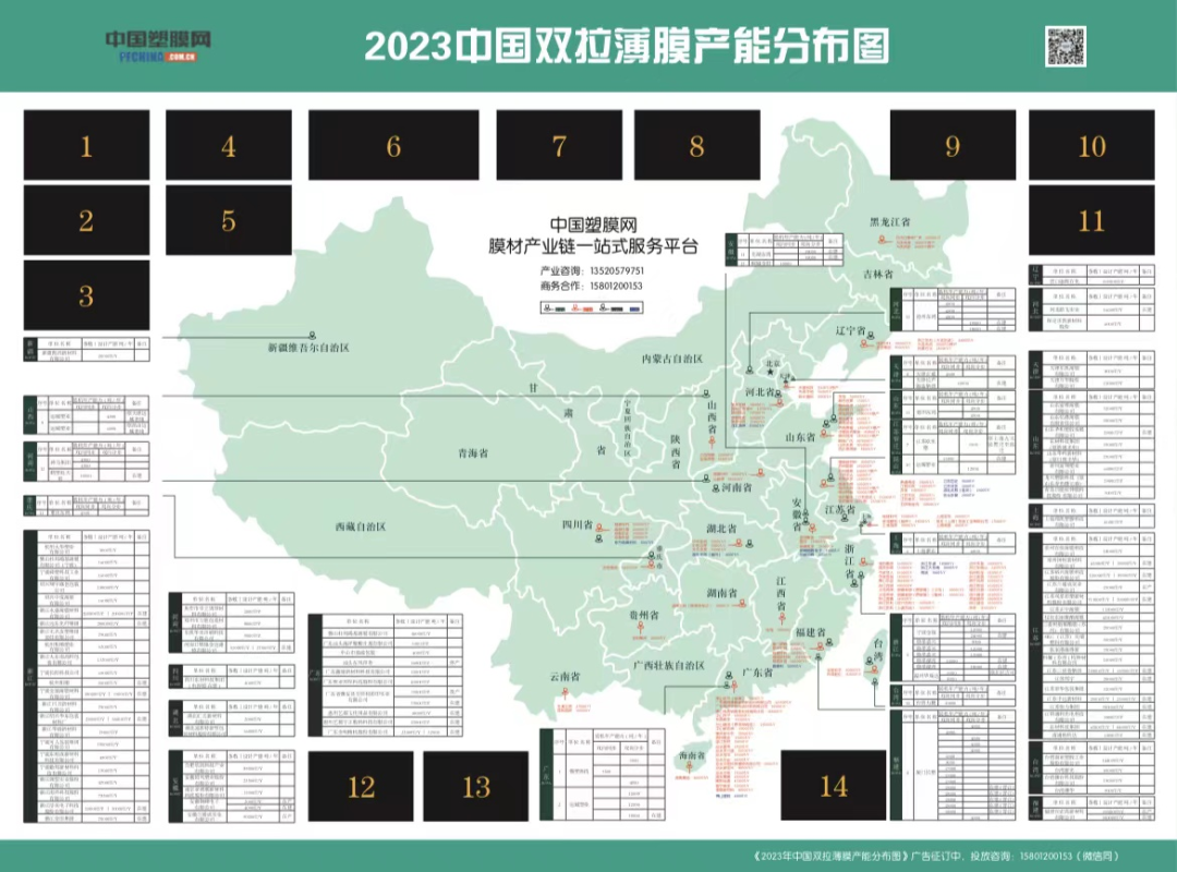 2023中国双拉薄膜产能分布图广告位征订开始了,部分广告位已售,想要订购的抓紧了,咨询联系:15801200153(微信同)