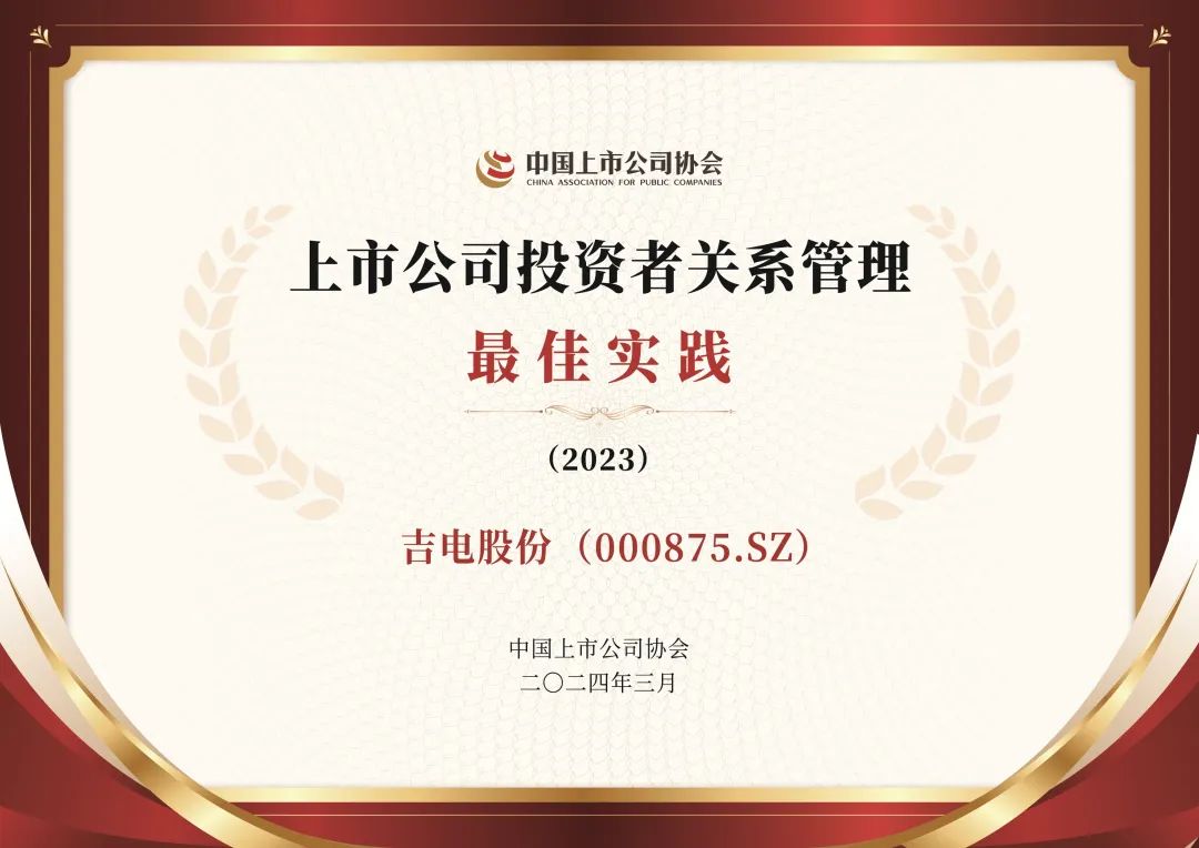 吉电股份荣获中国上市公司协会