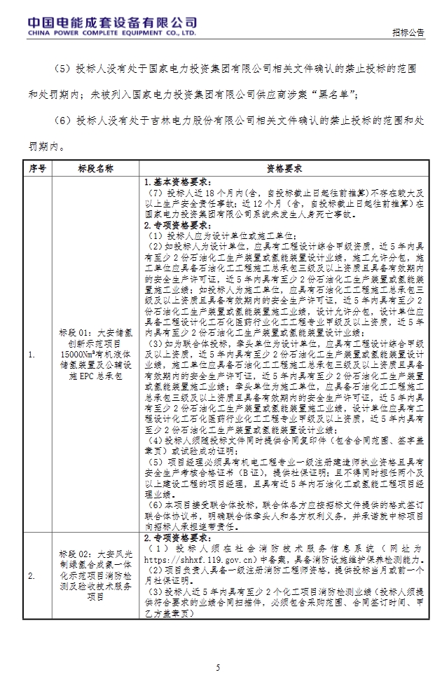 标段一:大安储氢创新示范项目15000Nm3有机液体储氢装置及公辅设施EPC总承包。投标人负责15000Nm3有机液体储氢成套装置及固态储氢与有机液体储氢区域总图、地勘、公辅设施的设计、设备供货、施工及调试、达标投产、达到规定的性能保证指标且整套装置质保期满止,为建设一个完整的工程所需要的全部工作。