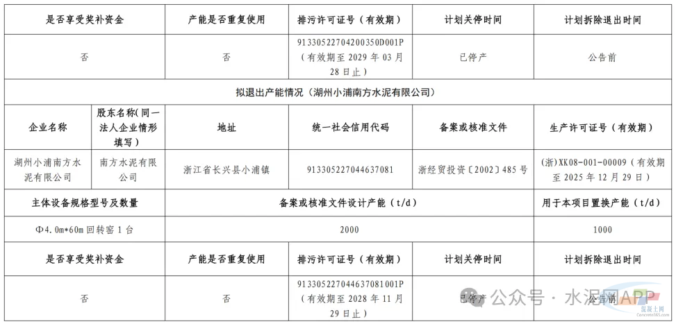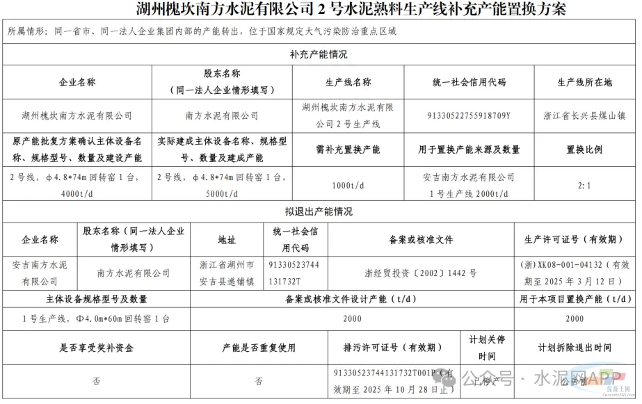 湖州槐坎南方水泥2号线置换补充产能1000t/d;