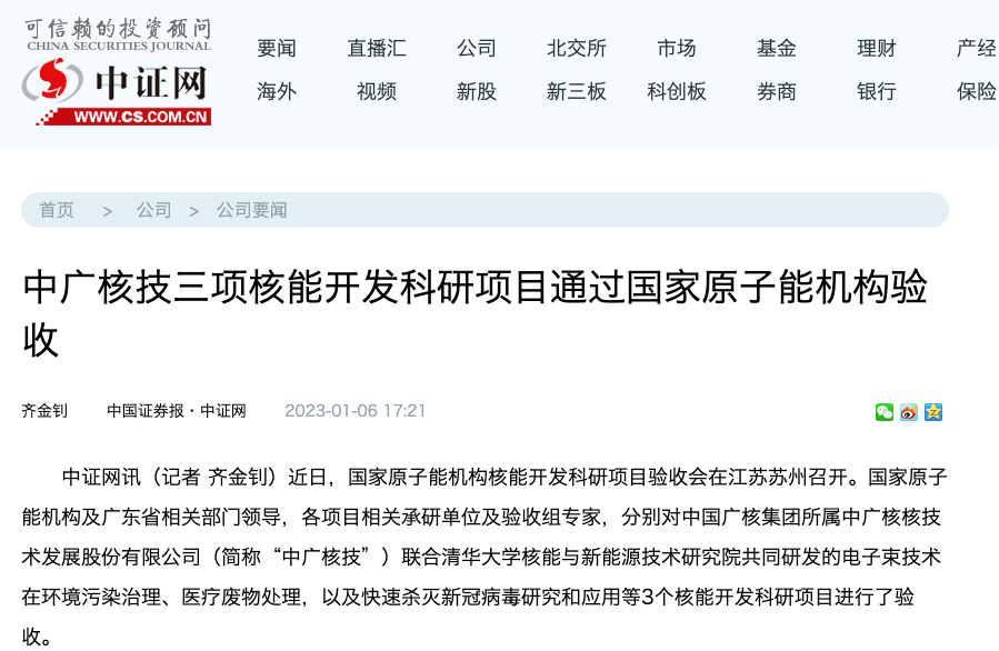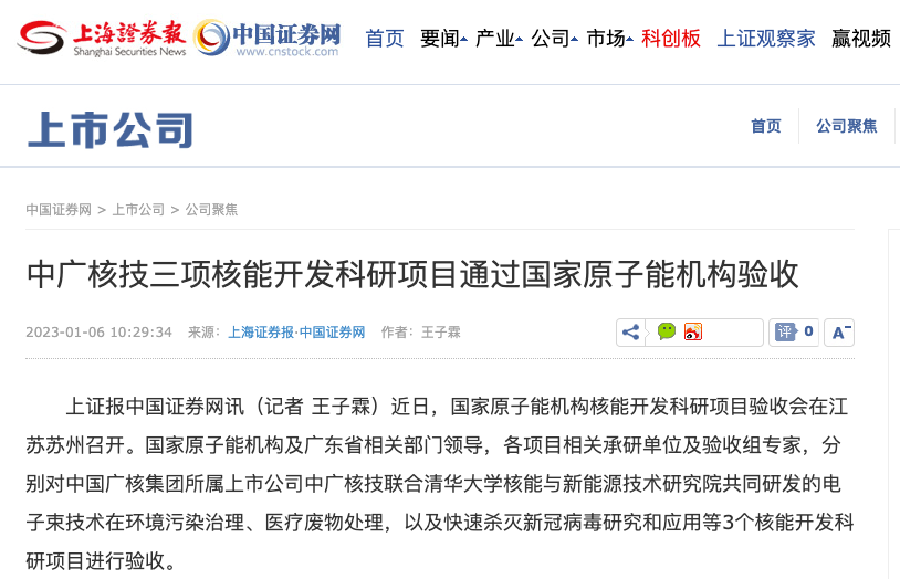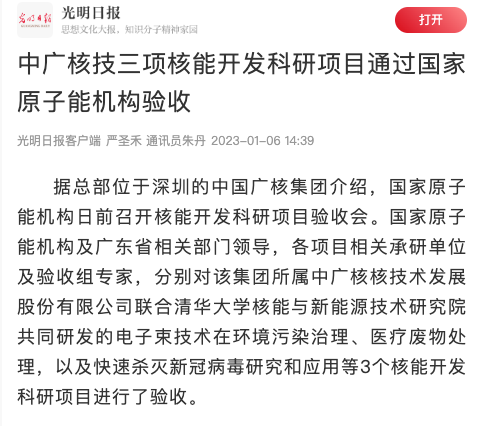 人民日报、新华财经、光明日报、经济日报、科技日报等中央媒体,中国证券报、经济时报、上海证券报等财经媒体,羊城晚报、深圳商报等地方媒体,能源界、北极星电力网、中国核电网、中国核技术网等行业媒体,进行了聚焦报道,超过 60余家媒体、网站进行了转载,让我们一起看看部分媒体的精彩报道!