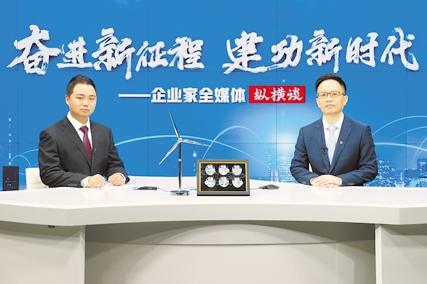 4月25日,湖北能源集团股份有限公司董事长、党委书记朱承军(右)做客湖北日报企业家全媒体纵横谈。