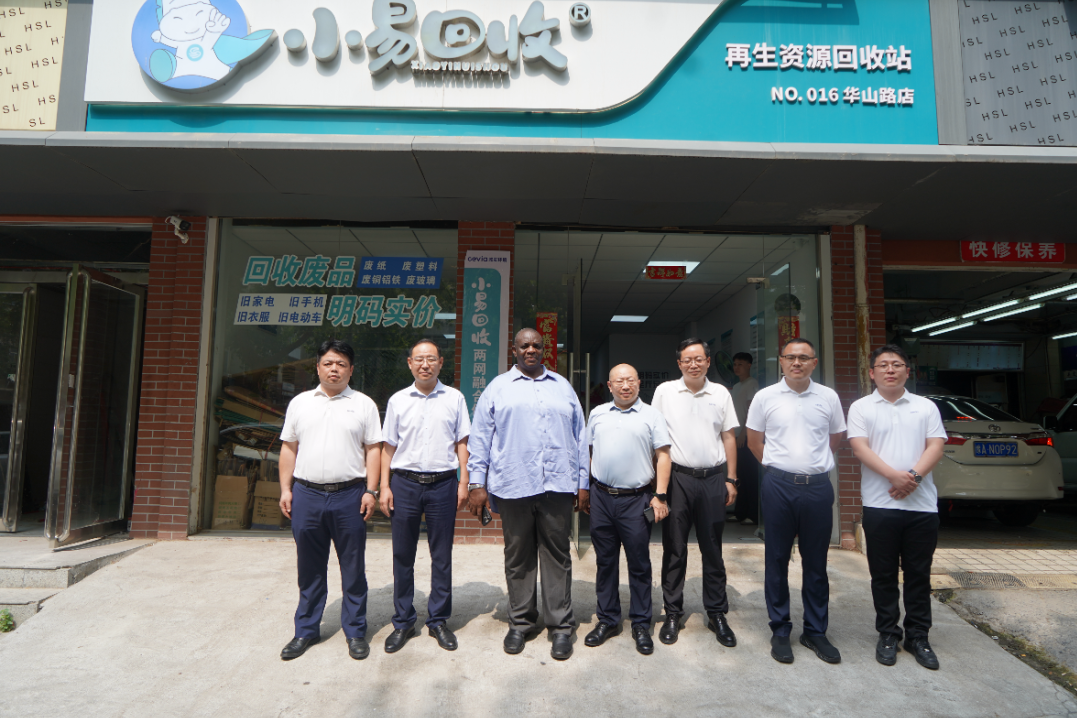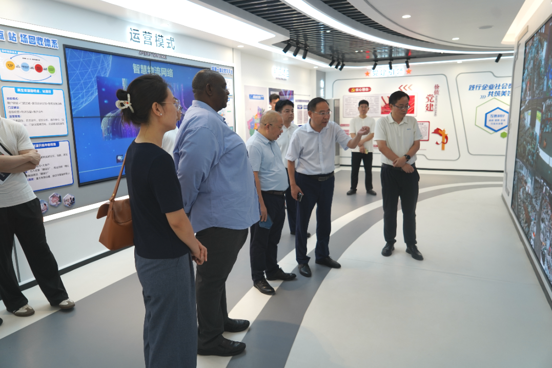 在中原区再生资源分拣中心,代表团实地察看废纸、塑料、金属等可回收物的分拣流程,详细询问了分拣效率、设备配置及后续资源化利用情况。随后,代表团来到“嘚嗒回收”门店示范点,亲身体验智能回收设备和“线上预约、线下回收”服务流程。