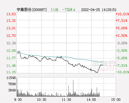 金融界4月25日消息今日中鼎股份开盘报12.07元,截止14:08分,该股跌10.01%报11.15元,封上跌停板。