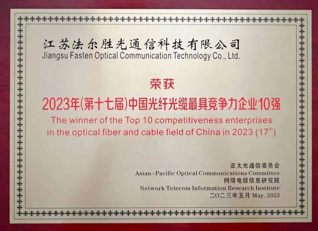 该评选活动根据参评企业的生产规模、市场表现等方面的各项要素指标进行评选,评选结果清晰显示了全球/中国光通信行业及各细分领域间的竞争态势,因其结果客观、公正,受到了行业专家的高度赞誉和企业的一致认可,也为全球光通信行业竞争力分析提供了有价值的参考依据。法尔胜光科已经连续多年荣登榜单,充分证明法尔胜在光通信行业的领先地位。