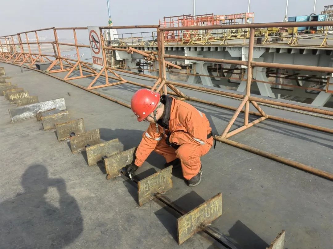常泰长江大桥主航道桥南岸共有45个大节段,目前已完成40个大节段的架设任务。自2023年2月主航道桥大节段钢梁开始发运、架设以来,法尔胜检测公司的检测工程师们克服了生产工期紧、检测周期短等困难,制定了详细的检测计划及检测方案,保质保量的完成了第三方检测任务。
