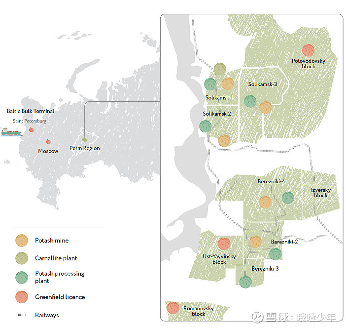 对比下图俄钾,同样是一矿区一工厂,保障稳定生产。