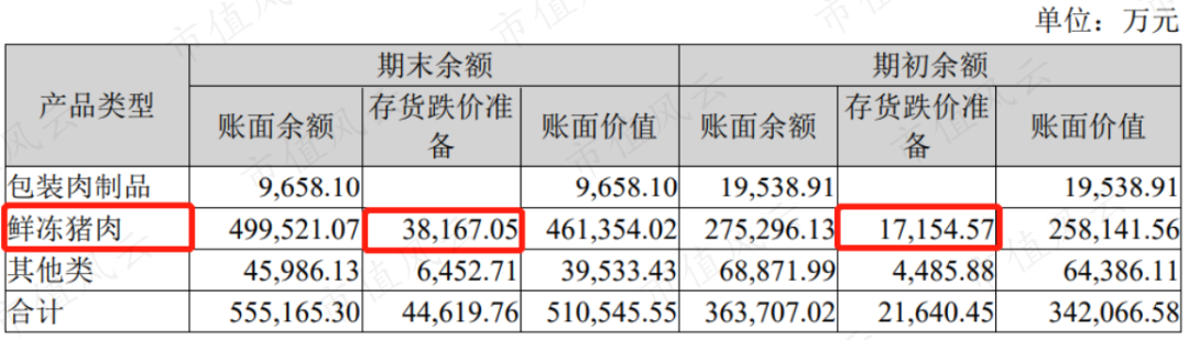 其中,占据库存商品75%以上的鲜冻猪肉2021年6月末存货跌价准备是期初的2.2倍。