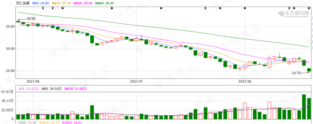8月19日,万洲国际以5.57元/股收盘,跌幅6.39%;双汇发展以24.98元/股收盘,再次跌去4.98%。