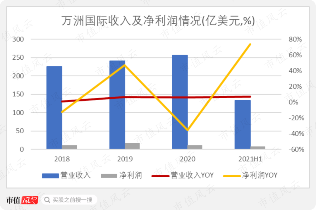 (2021H1万洲国际分部收入与利润)