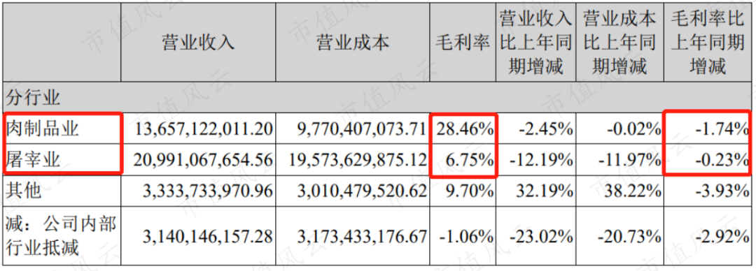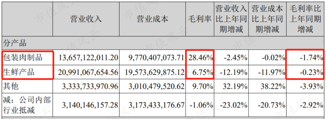 先来看双汇发展。2021年上半年双汇发展的营业收入、归母净利润双双下行,同比降幅分别为4.14%和16.57%。