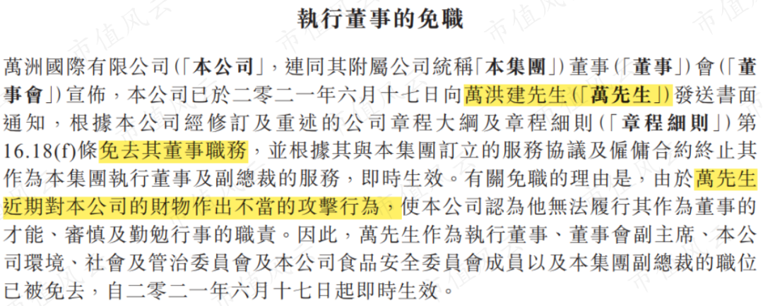 这出“闹剧”最早要追溯至今年6月17日,双汇集团母公司万洲国际(00288.HK)突然发布一则免职公告,参与管理双汇多年的“前太子”万洪建明面上被父亲、双汇创始人万隆踢出了双汇发展的管理层和接班人之列。