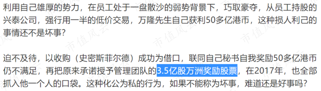 2、以收购(史密斯菲尔德)成功为借口自我奖励50多亿港币;