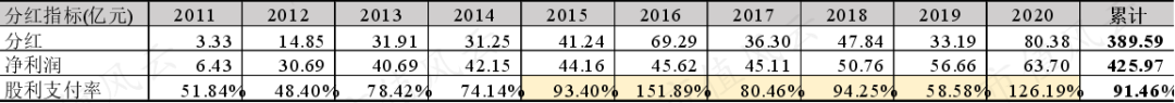 最近十年以来,双汇发展累计分红389.6亿元,累计股份支付率高达91.46%。