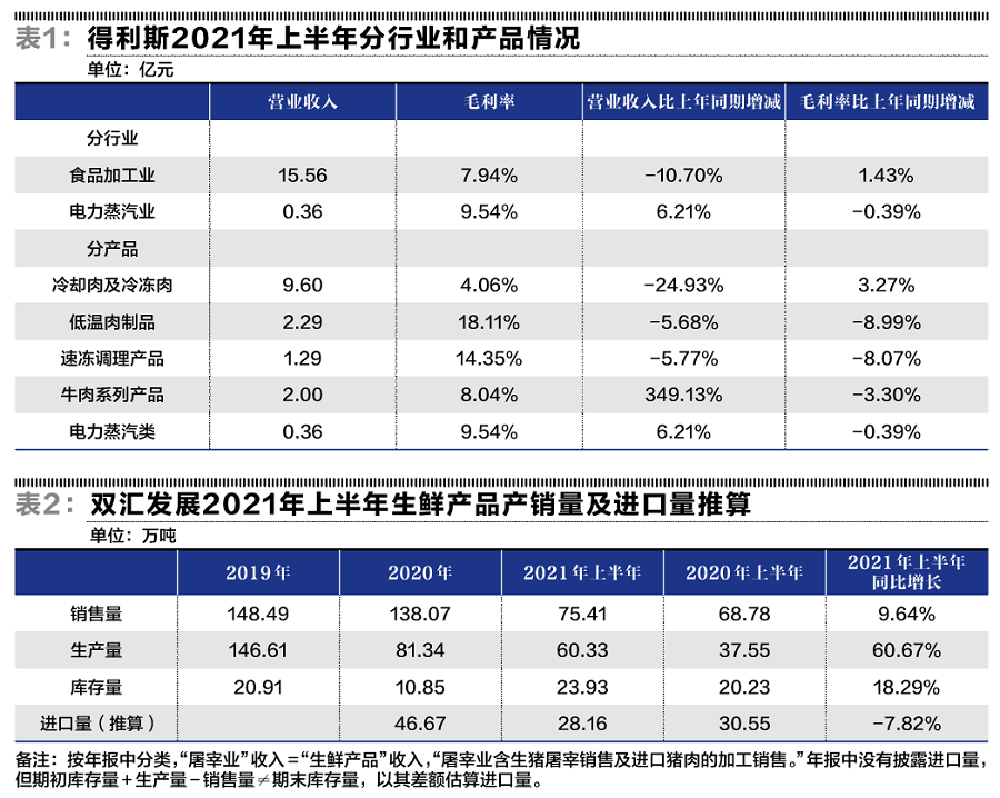 对此,公司在半年报中做出了解释——“利润下降主要原因是2020年冻品盈利基数较高、本期由于中外价差收窄进口肉盈利下降、员工及市场费用的投入增加等。”