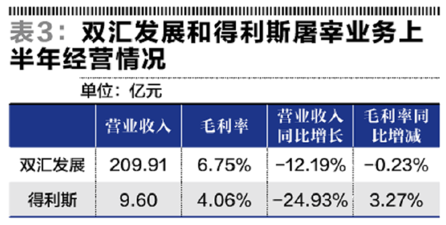 虽然如此,仍然有人坚持认为双汇发展的业绩下滑另有原因:“到了今年第二季度,国内猪肉价格已经大幅回落,可为什么以猪肉为原材料的双汇发展毛利率不增反降?”还有人发现,“同期得利斯(002330.SZ)公布的业绩预告为上半年净利润预计2000万到2500万元,同比增长106.9%到158.63%;龙大肉食(300139.SZ)的业绩预告称,上半年净利润增长0%到5%,约为3亿元到3.2亿元。”