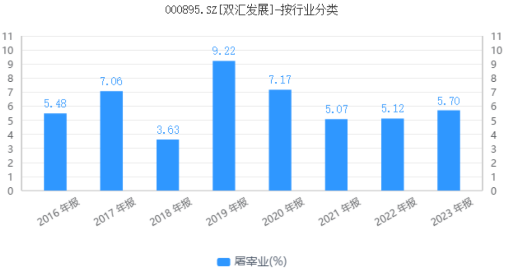 近几年,随着牧原股份等生猪养殖企业加大了对屠宰业务的投资,双汇发展屠宰业务进一步受到冲击。数据显示,2023年,牧原股份实现生猪屠宰量1326万头,同比增长80%,生猪屠宰量已超过同期双汇发展(不足1300万头),跃居行业第一。