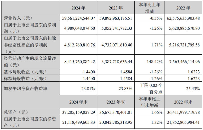 2024年,双汇发展实现利润总额66.59亿元,同比上升0.21%;归属于上市公司股东的净利润49.89亿元、同比下降1.26%。对此,双汇发展称,公司利润总额同比上升、归属于上市公司股东的净利润同比下降,主要是受生鲜品、养殖业等企业所得税免税业务利润下降影响。