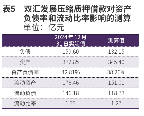 如果购买方在内部交易中能够及时支付货款,双汇发展的资产负债表会变得更好看。我测算了一下,如果公司能将54.90亿元的质押借款压缩一半,在不考虑利息收支和相关投资收益的情况下,公司的资产负债率会从42.81%下降至38.26%,效果明显;流动比率也会得到一定改善。