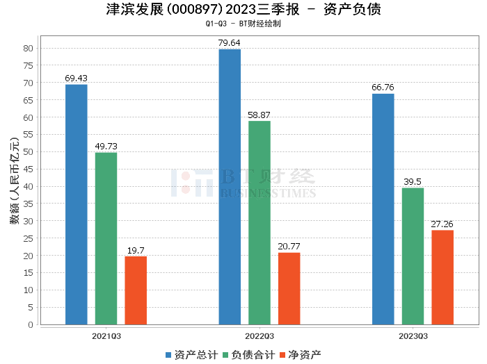 从资产负债表来看,津滨发展的总资产由上年度末的82.42亿元减少至66.76亿元,负债合计也由上年度末的60.1亿元降至39.5亿元,净资产则从上年度末的22.32亿元增长至27.26亿元。资产负债率由72.92%降至59.17%,反映出公司在降低负债、优化资产结构方面取得了一定成效。