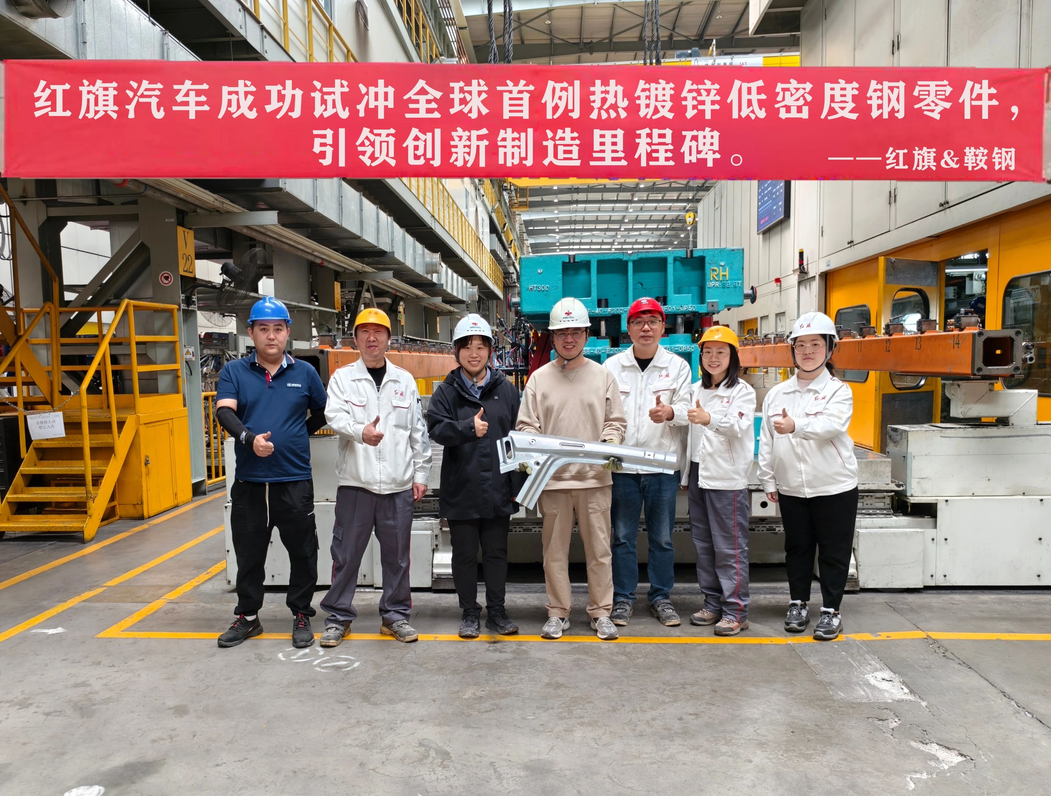 双方针对低密度材料的产品特性,共同进行了试冲零部件的选择和冲压实验。在一汽红旗蔚山冲压车间进行的冲压实验中,通过调整冲压工艺,成功完成了国内首个热镀锌低密度冷冲压零件的生产,冲压效果良好。这一成果不仅证明了鞍钢590MPa级低密度热镀锌冷轧高强汽车钢的优越性能,而且为双方未来的合作奠定了坚实基础。