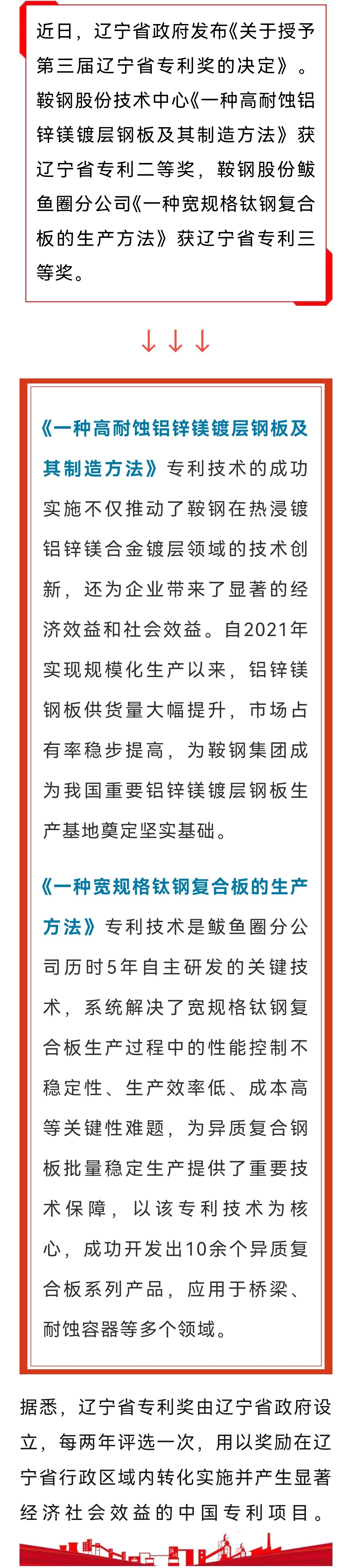 省政府发布专利奖 鞍钢股份两项专利技术上榜!